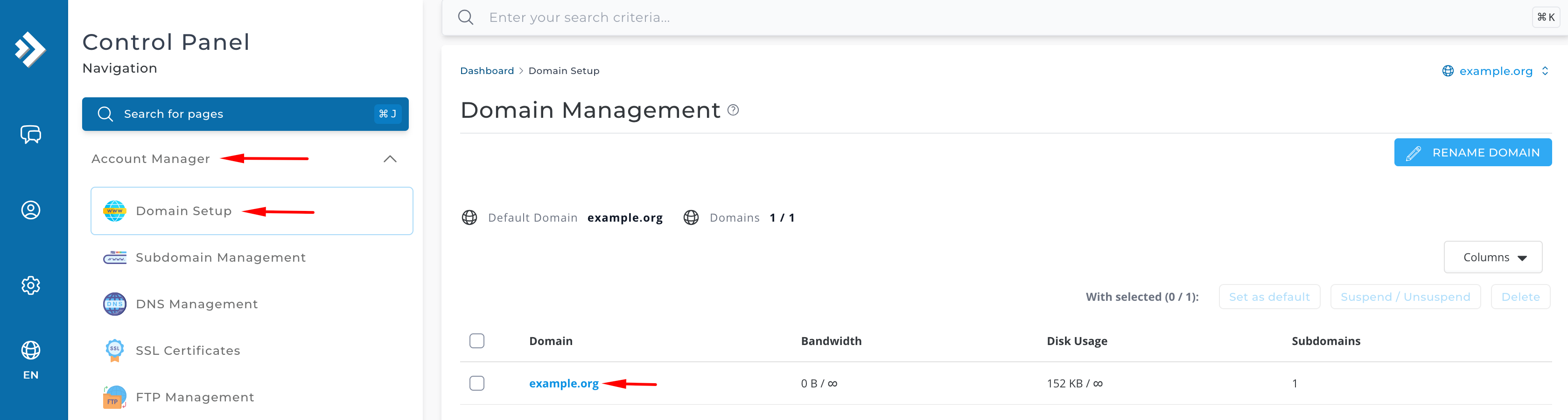 - Πατάμε το “SSL Certificates” (βρίσκεται στην περιοχή “Account Manager”).