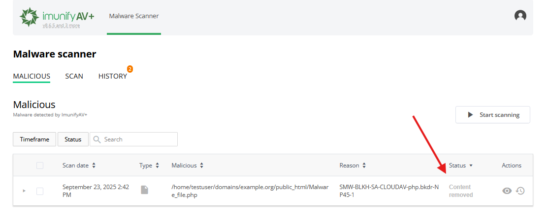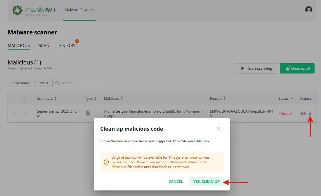 Το ImunifyAV+ έχει τη δυνατότητα να καθαρίσει αυτόματα τις μολύνσεις.